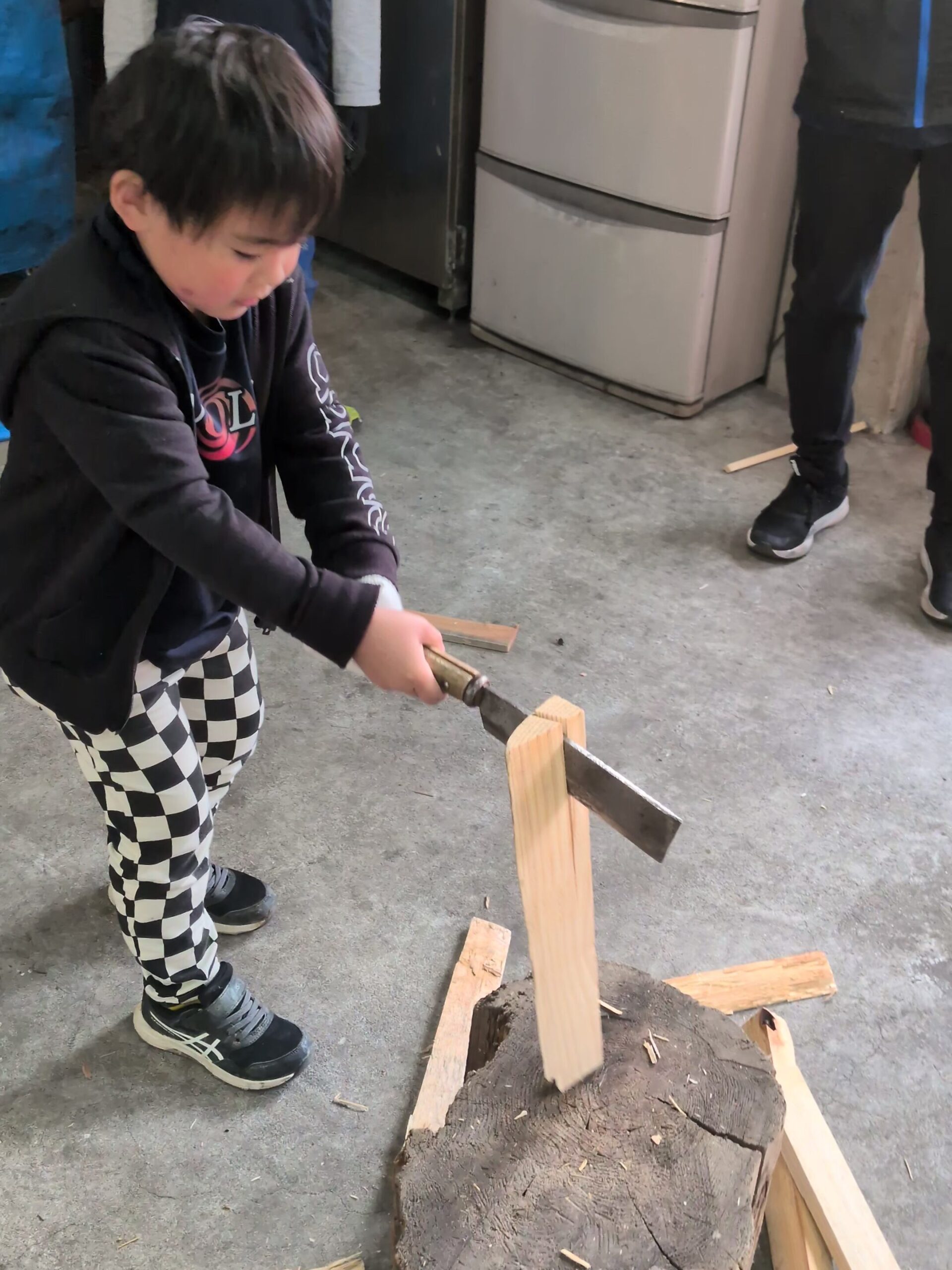 薪割りは多くの子が初挑戦でした。