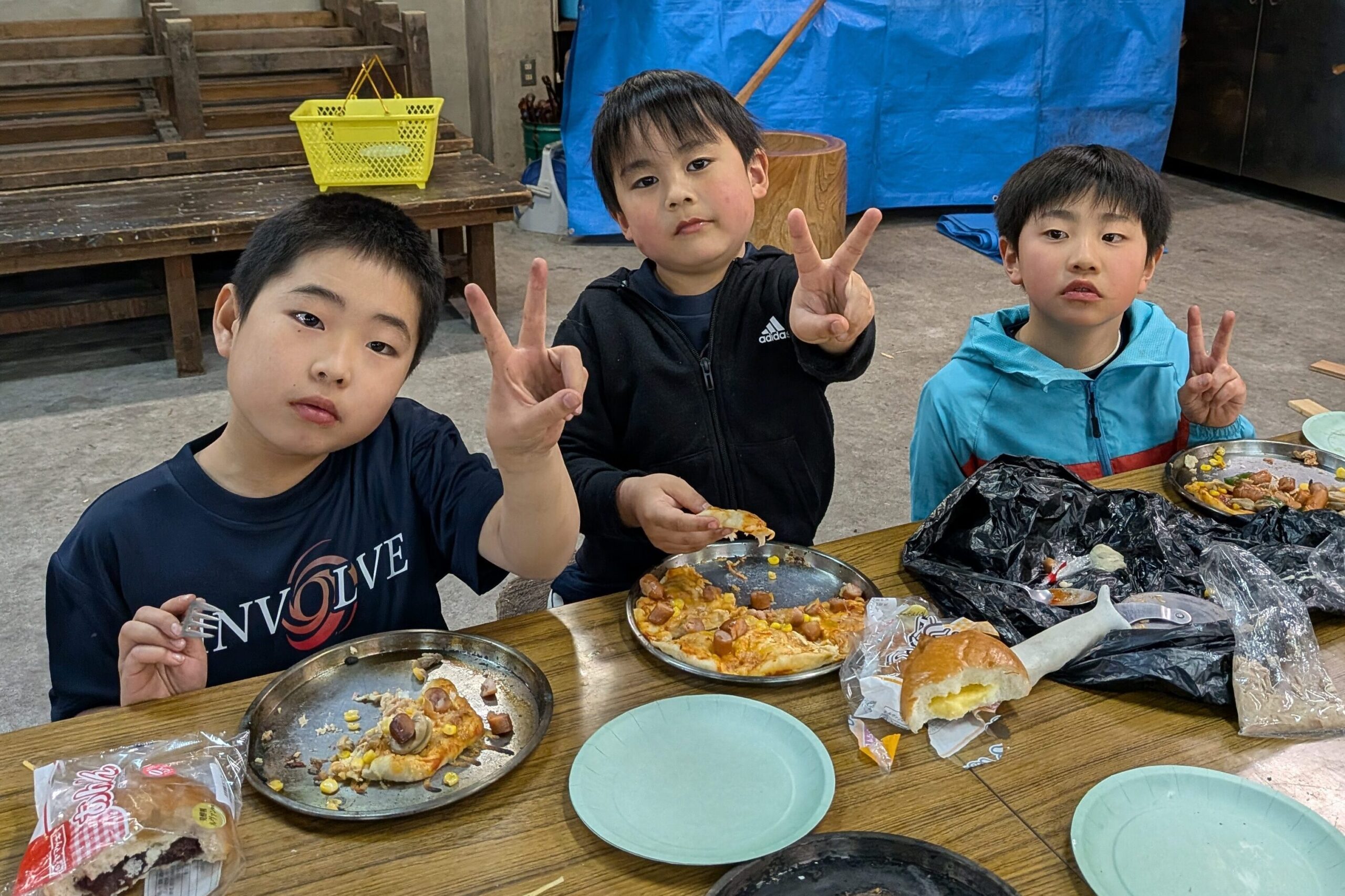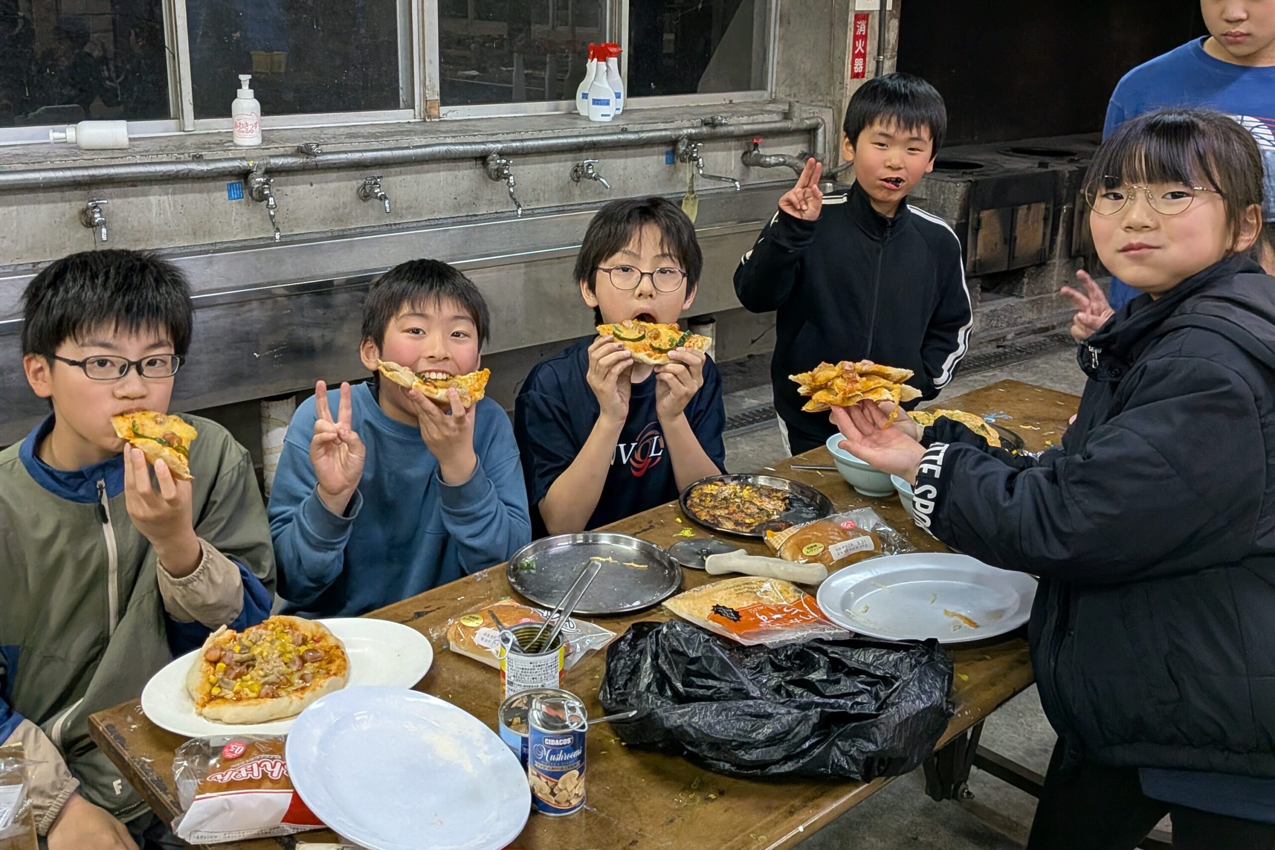 完成したピザを食べながら、「美味しい!」という声と笑顔がたくさん見られました😆
