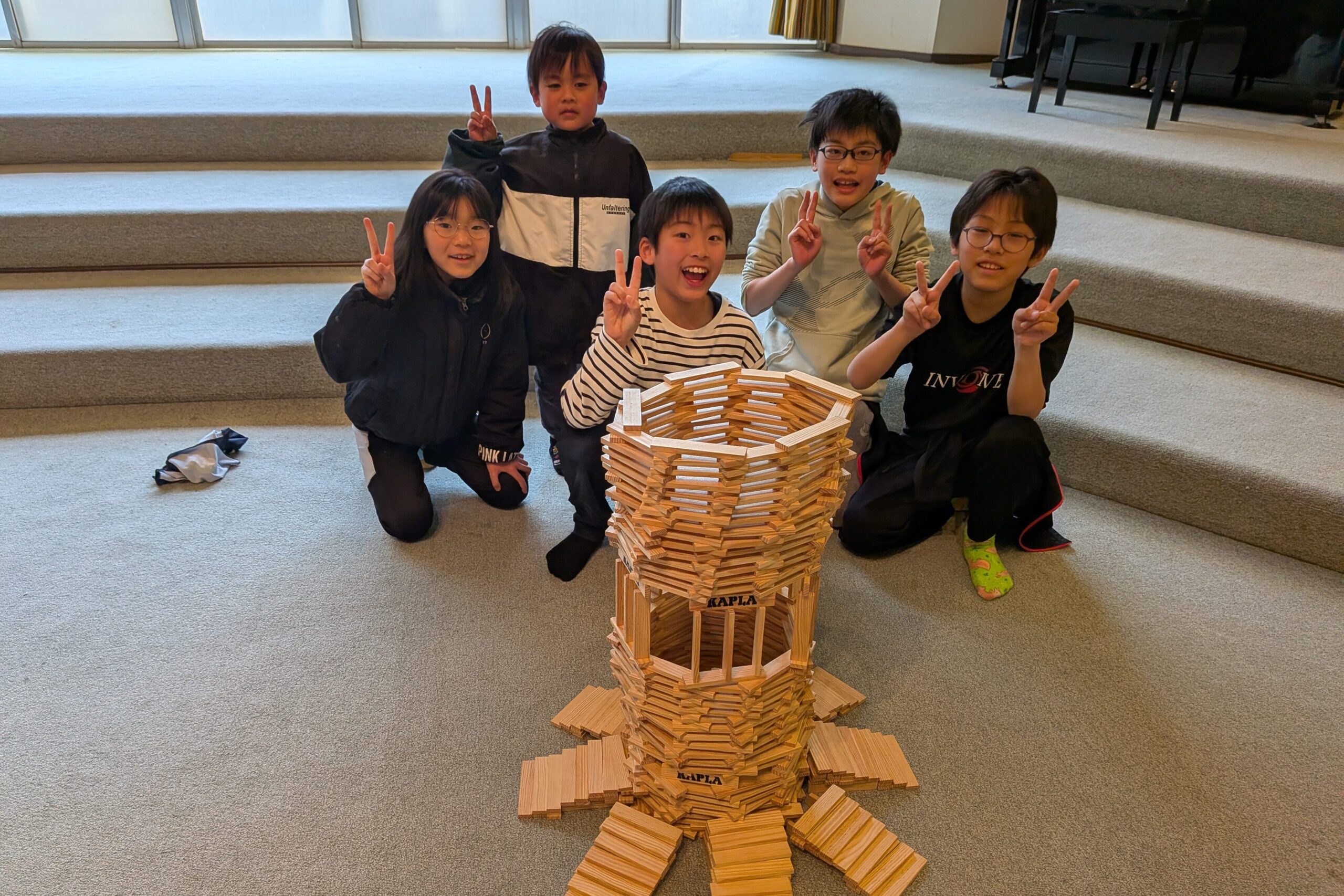 何度も崩れながらもあきらめずに試行錯誤する姿が見られ、グループで超大作を完成させる場面もありました。