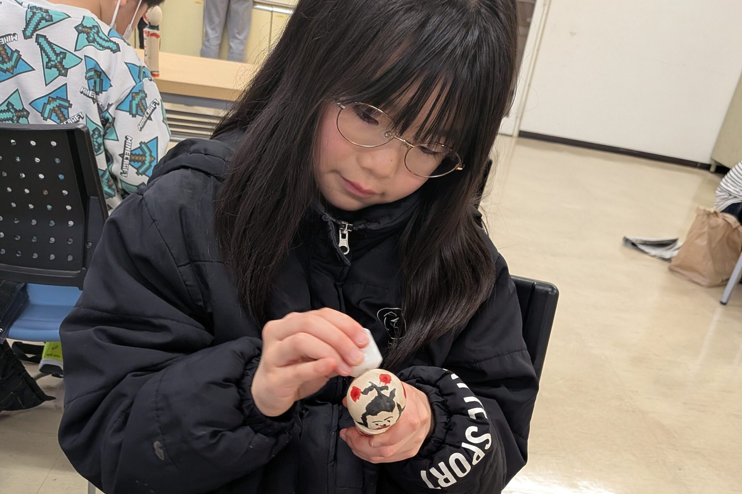 最後は伝統工芸のこけしの絵付けに挑戦しました。