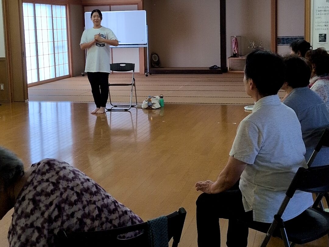 令和7年8月28日に、高木小路公民館にて花巻市事業の「出張フィットネス」の講師派遣依頼を受け、椅子に座ったまま・体を横にしながらできる、無理のないストレッチを実施しました。